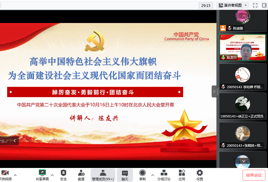 院党委委员陈友兴对接电子信息工程专业师生党支部。他强调,高等院校是建设教育强国、科技强国、人才强国的重要领地;教工党员是培养人才的中坚力量;学生党员是实现第二个百年奋斗目标的有生力量,他号召师生党员要“入脑入心”学、“真学实干”做,把大会精神转化为加快推进学校“双一流”建设的强大动力。