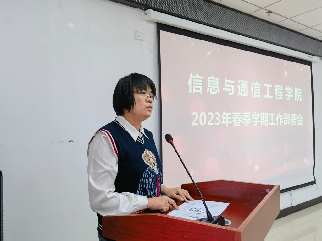 教学科长梁俊芳传达学校对新学期课堂教学、教改项目申报、学科竞赛和工程教育认证等工作要求;同时要求教师严格遵守上课时间,按要求提交本学期教学日历,配合完成学生补考等工作。