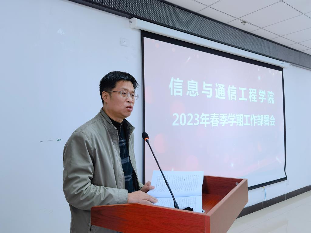 院长杨风暴总结学院2022年在疫情防控、学科建设、教研教学、科学研究以及学科竞赛等方面取得成果,并对2023年学院重点工作进行了详细部署。新学期,教学工作平稳有序进行,认真准备电子信息工程专业工程认证进校考察,鼓励全院教师积极参与教学大赛以及项目申报;加强科研工作,注重科研成果转化,提高各类基金申报和审批数量,提升研究生培养质量,促进军工企业联合培养。希望全院教职工齐心协力,精诚合作,圆满完成本学期的工作任务,为学校建设“双一流”高校贡献力量。