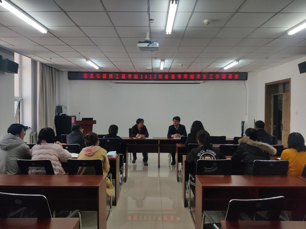 2月23日上午,学院在715会议室召开新学期学生工作部署会。会议由学院党委副书记魏媛媛主持,全体辅导员参会。学院党委书记曹凤才出席会议并讲话。