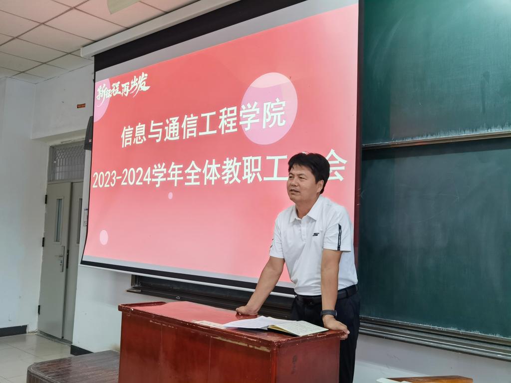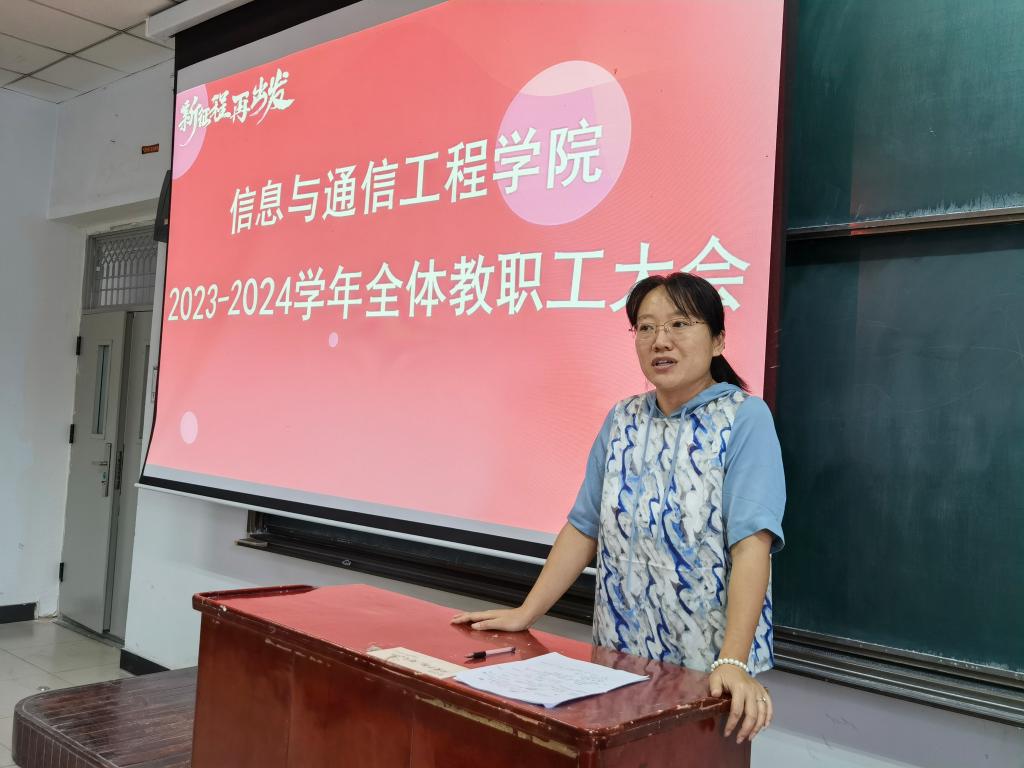 于9月5日在11212H召开全体教职工大会,对新学期工作进行安排部署。会议由学院党委副书记兼副院长魏媛媛主持。