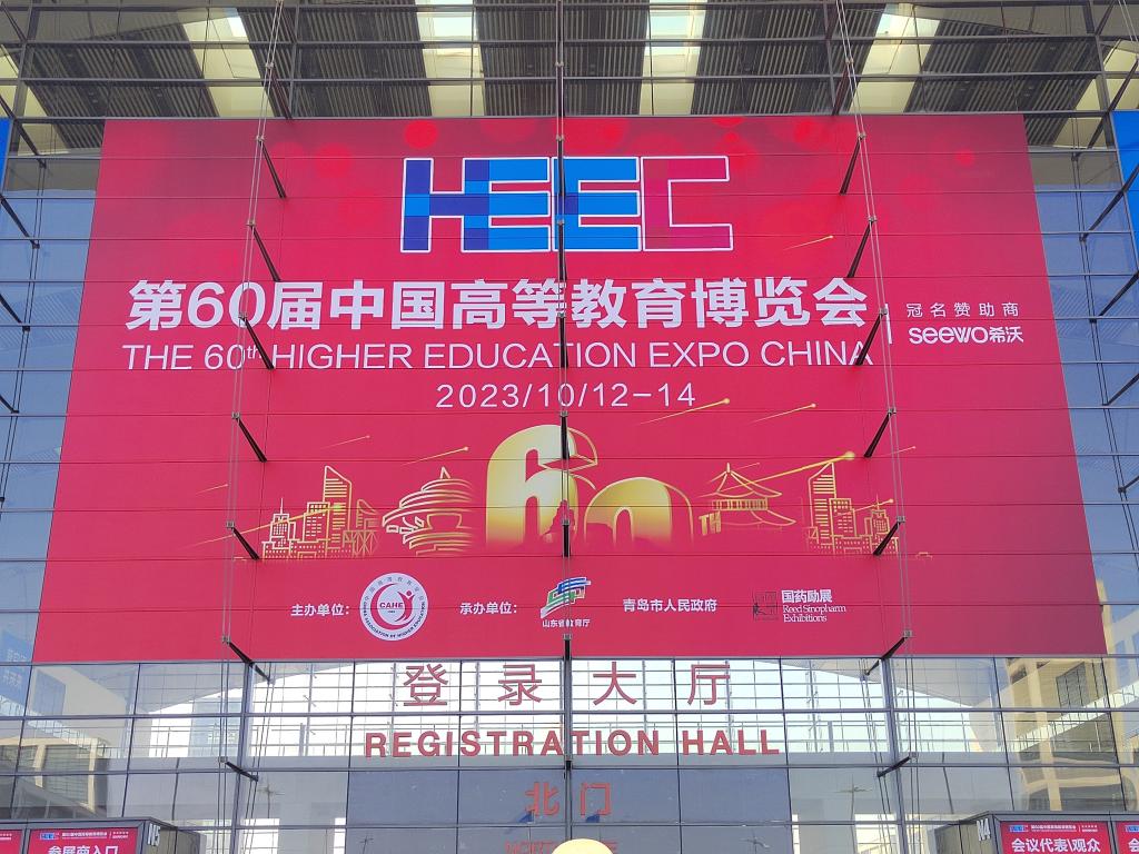 教师参加在青岛·红岛国际会议展览中心举办的“第60届高等教育博览会”,两项科技成果亮相展会“科创专区”。