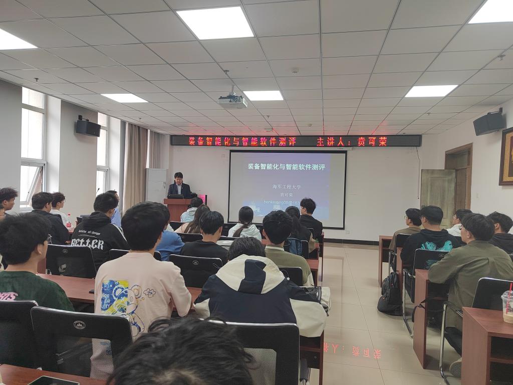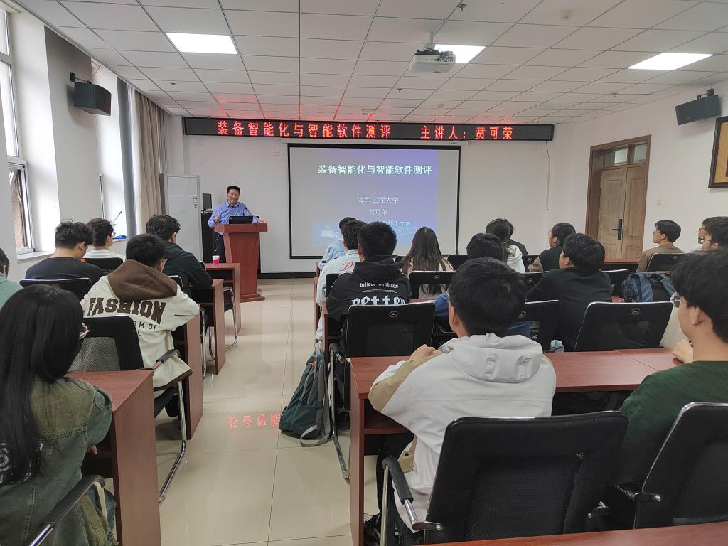 邀请中国计算机学会(CCF)理论计算机科学专委副主任、首届湖北省优秀研究生导师、海军工程大学教授、博士生导师贲可荣教授在科学楼B座715会议室举办了题为《装备智能化与智能软件测评》的学术报告。报告由学院党委书记曹凤才主持,学院相关专业教师和人工智能专业本科生参加了此次报告会。