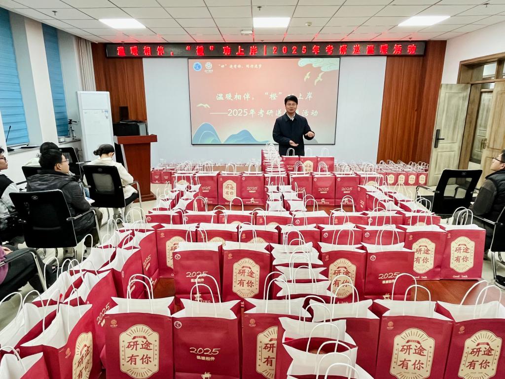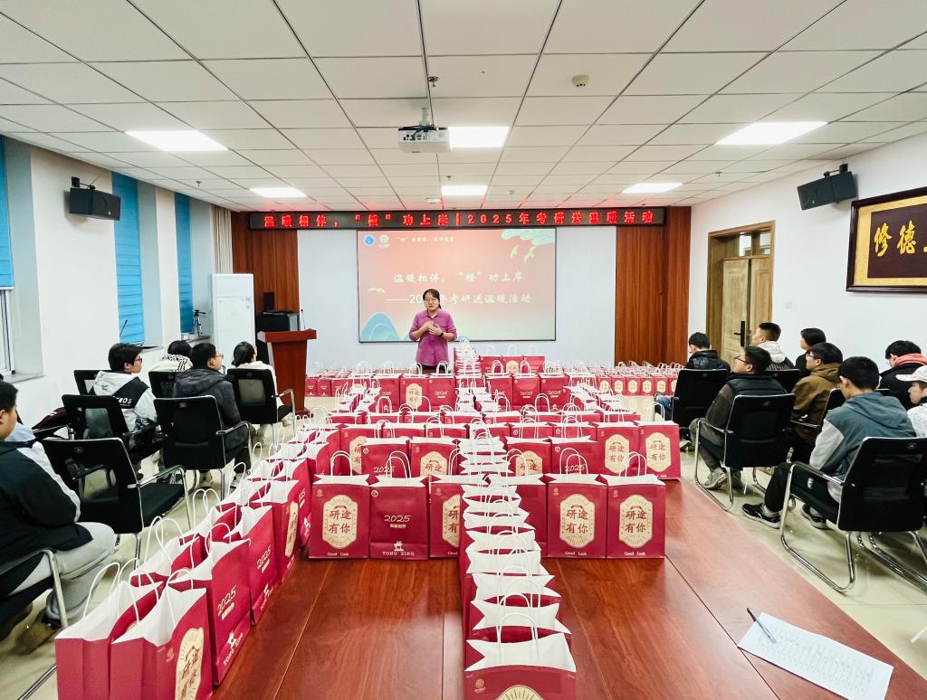 在院楼715会议室举办“温暖相伴,‘橙’功上岸2025年考研送温暖”活动。学院党委书记曹凤才、党委副书记兼副院长魏媛媛、毕业班班主任和毕业班学生代表参加了活动。