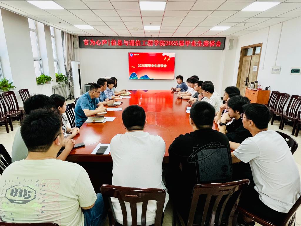 (人工智能学院)在科学楼B座713会议室召开2025届毕业生座谈会。学院院长王黎明、党委副书记么兰、副院长刘吉及教学科科长梁俊芳,就业辅导员孟伟、左冠华与17名毕业生代表进行了座谈。座谈会由么兰主持。