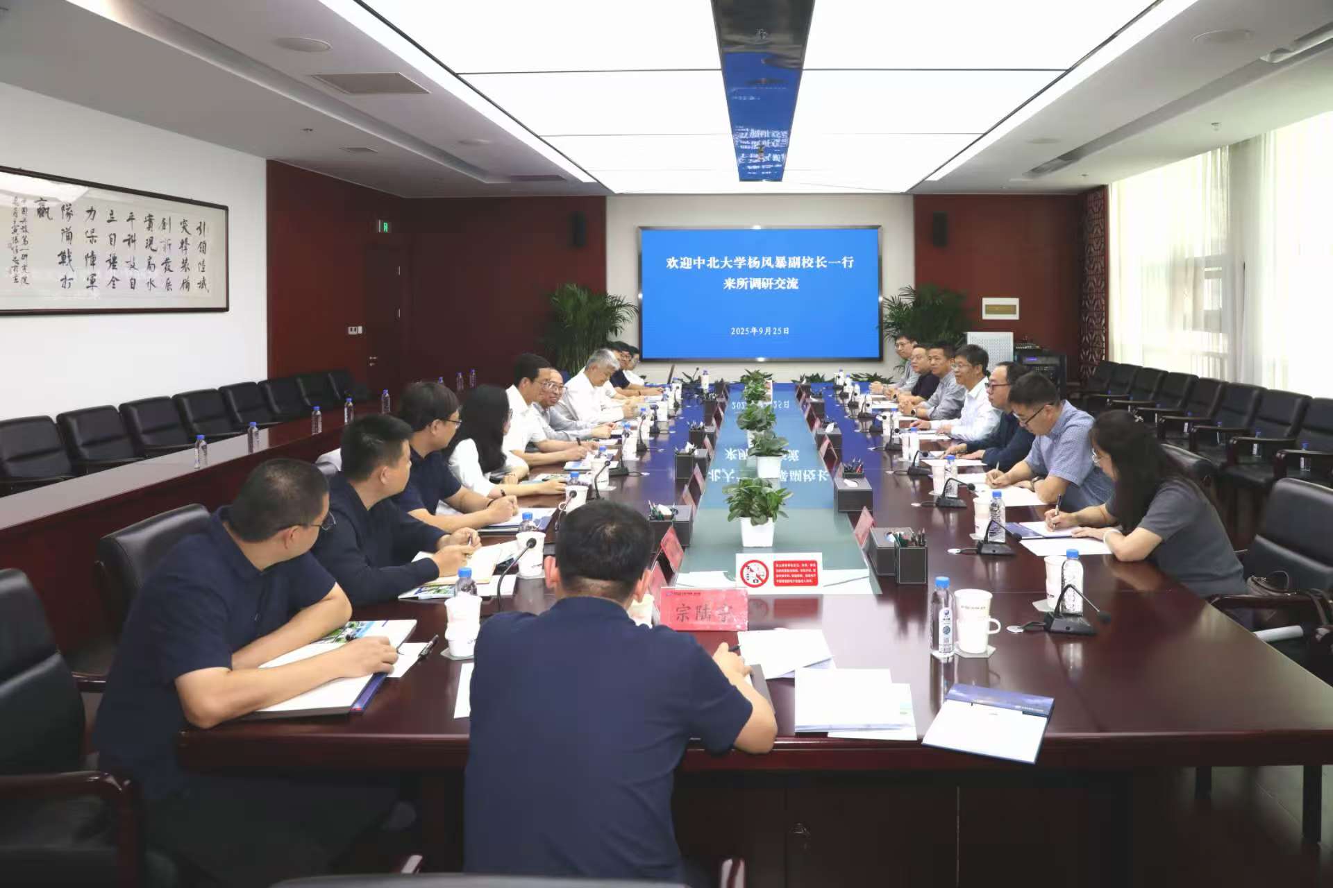 随后双方进行了工作座谈交流,兵器一院院长刘勇、副院长宁功韬、院长助理王亚飞及院办、人力资源处、科技与信息化处和相关业务技术部负责人出席了座谈交流会。会上,兵器一院院长刘勇、副院长宁功韬、院长助理王亚飞等领导对中北大学一行的到访表示欢迎,并充分肯定了学校在国防科技人才培养和关键技术研究方面的贡献。刘勇表示,研究院正持续加强前沿技术布局和高端装备研发,亟需高校在基础理论、创新技术和人才输送方面提供支撑,希望与中北大学建立常态化合作机制,共同开展科研项目攻关、人才联合培养等工作。
