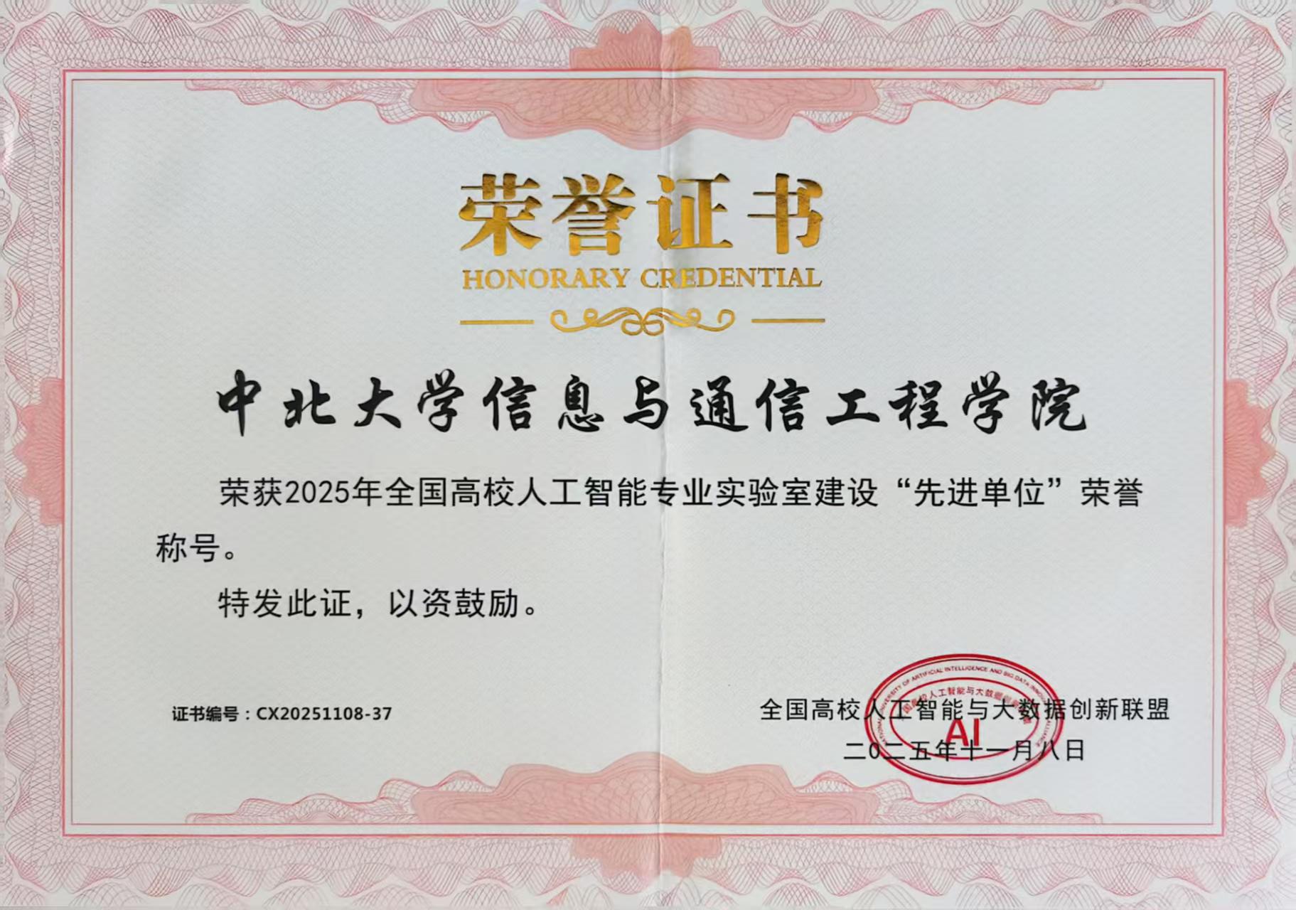 荣获“2025全国高校人工智能专业实验室建设先进单位”荣誉称号,李剑老师被聘为“联盟常务理事”,潘毅华老师获“2025全国高校人工智能教育教学创新奖”,葛利华老师获“2025全国高校人工智能教育学术创新奖”。
