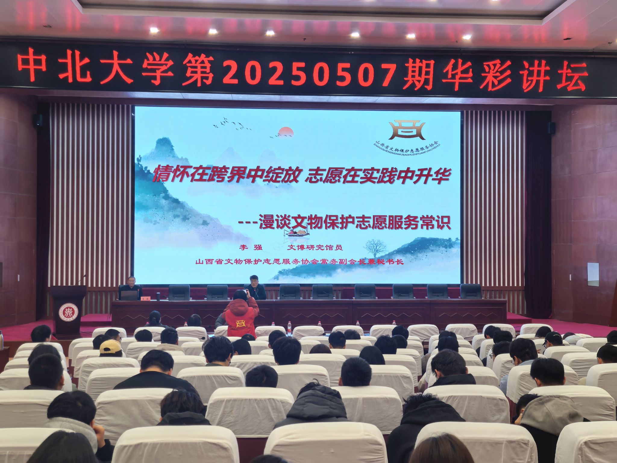 (人工智能学院)在图书馆五层学术报告厅成功举办了研究生第20250507期华彩讲坛。本次讲坛特邀山西省古建筑与彩塑壁画保护研究院(山西古建筑博物馆)文博研究馆员、山西省文物保护志愿服务协会副会长兼秘书长李强老师主讲,题为《情怀在跨界中绽放 志愿在实践中升华——漫谈文物保护志愿服务常识》。讲座由中北大学学生工作部(人民武装部)副部长崔亚主持,学院广大教师和研究生积极参与了此次讲座。