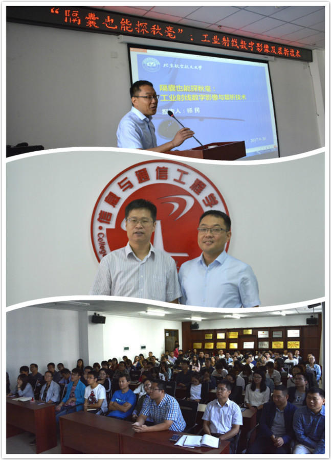 院楼715学术报告厅座无虚席,学院优秀校友杨民教授带来了一场题为《“隔囊也能探秋毫”:工业射线数字影像及层析技术》的学术讲座,这也是76周年校庆系列活动之一。