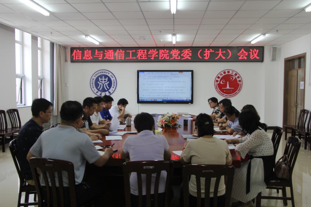 2018年6月19日下午17:00,信息与通信工程学院在院楼713会议室召开党委(扩大)会议,安排部署干部队伍作风建设、七一表彰、主题党日活动、党员党费电子缴费等相关工作。全体院领导、党委委员、学科管理部主任和副主任、各科室负责人参加了本次会议,会议由院党委书记曹凤才主持。