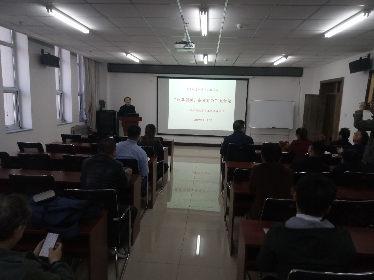 2019年3月12日下午,光电信息科学与工程教工党支部在院楼715学术交流中心召开了“改革创新,奋发有为”大讨论研讨会,支部全体党员参加了会议,会议由支部书记张志伟主持。
