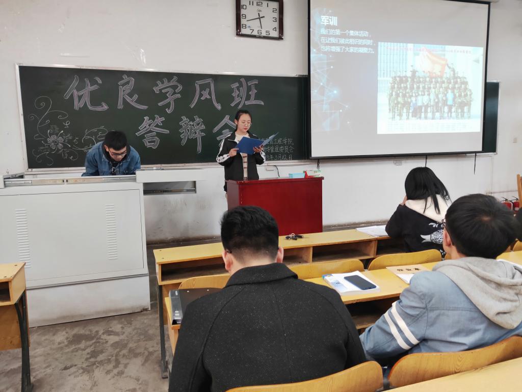 优良学风班的评选细则做了详细解读。接下来,参选优良学风班的22个班级通过PPT等形式从班级建设、学风建设、班级成绩、科技创新活动获奖等方面汇报了班级在学风建设方面取得的优异成绩,充分展示了班级精神风貌。