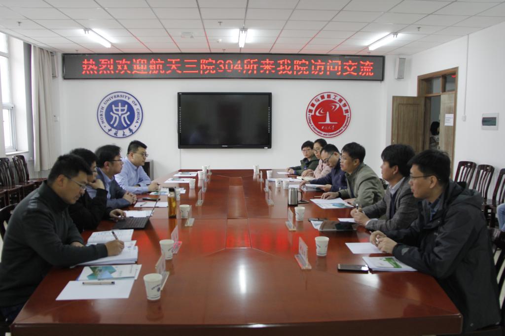 对航天三院304所的来访表示热烈欢迎,并对学院师资队伍、学科建设、科学研究、平台教学等方面做了详细的介绍;航天三院304所副所长王学勇对学院的热情接待表示感谢,同时介绍了304所的发展历史、组织机构、科研方向等。