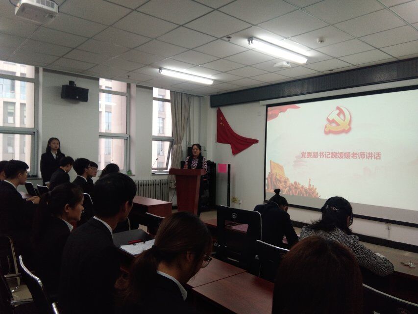 最后,院党委副书记魏媛媛老师发表讲话:她深切期盼,希望我们能继续发扬学生党支部的堡垒作用和旗帜作用,继续加强思想建设、组织建设、作风建设、制度建设,将“不忘初心、牢记使命”的精髓内化于心、外表于行,带动全院学生积极进取,迎难而上,为学校争创双一流高校而奋斗!