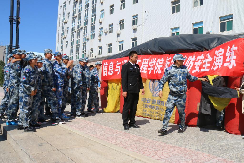 于2019年9月22日上午在致学广场举办2019级新生消防安全演练,本次演练的主讲嘉宾是来自安全健康教育中心的贾旭海副主任,出席演练现场的还有8X8X