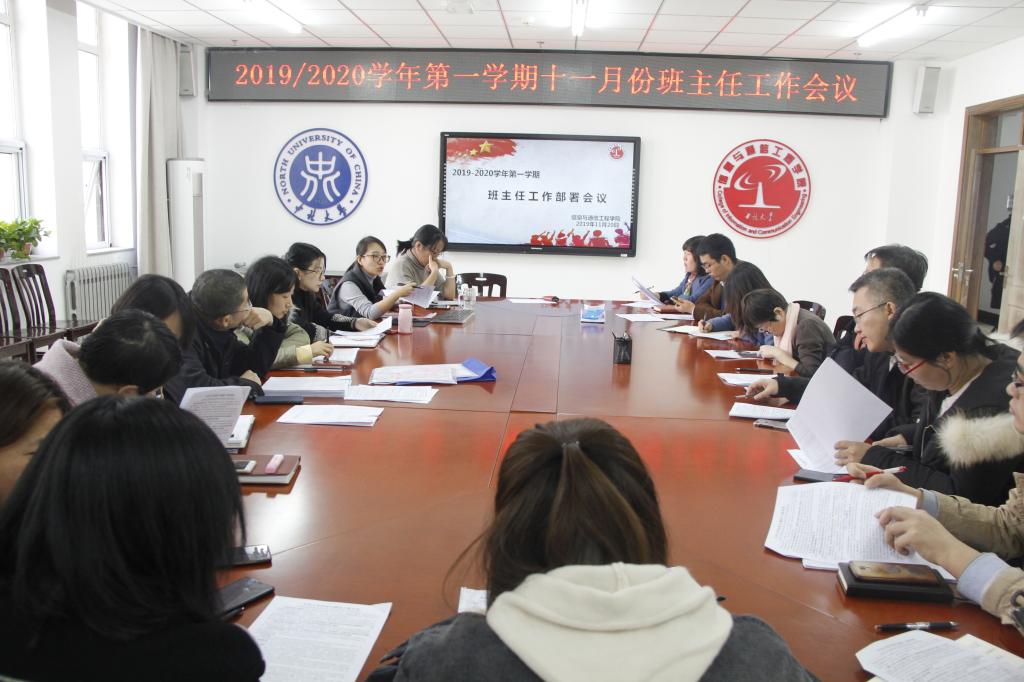于院楼713会议室召开十一月、十二月份班主任工作会议。学院党委副书记魏媛媛出席会议,全体辅导员、班主任参会。