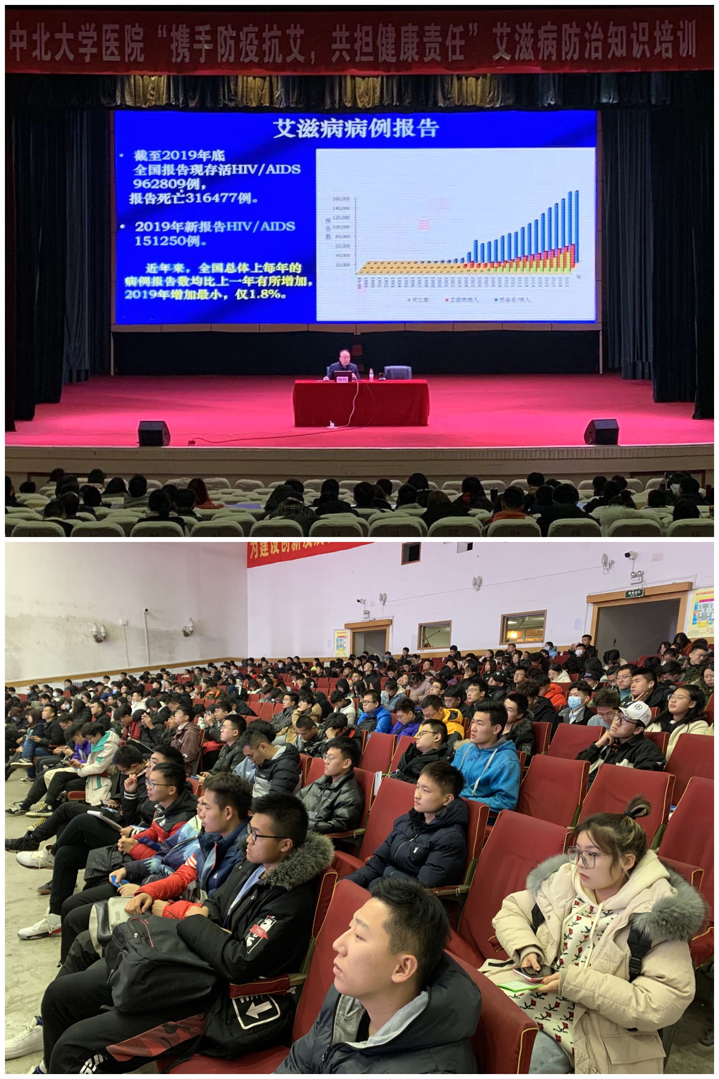 学院响应国家和学校号召,向各班级下发艾滋病防治知识和召开主题班会的通知,各个班级的代表同学也积极参加了校医院艾滋病防治知识培训讲座,受益良多。