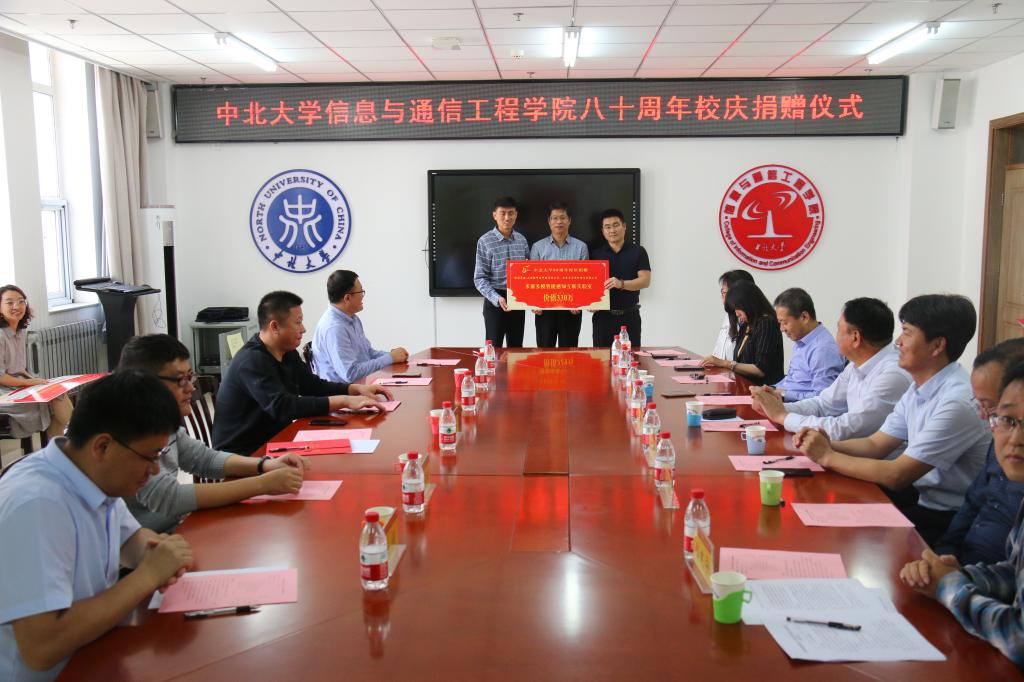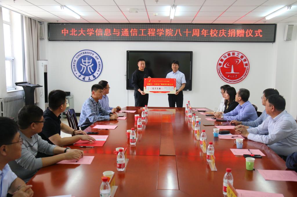 80周年校庆捐赠仪式在院楼713会议室隆重举行。山西灏峰源科技有限公司总经理郭文峰、北京方正世纪信息系统公司总经理李军、玉田县广顺商贸有限公司总经理静海涛,校友柴俊、张建峰、光建斌,中北大学副校长赵贵哲、工程训练中心主任赵正杰、中北大学教务处副处长高春强、学院全体院领导出席捐赠仪式。会议由党委副书记兼副院长魏媛媛主持。