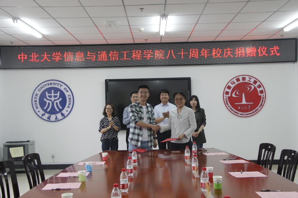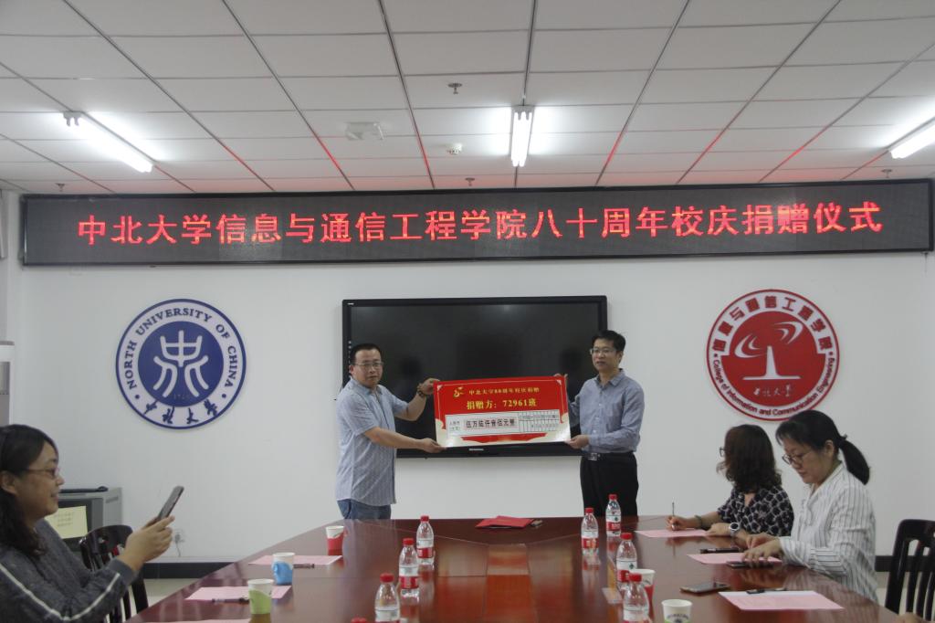 捐赠仪式上,72961班级捐款56100元,用于学院校友奖助学金资助项目;01073B1班级捐款20000元,用于信息对抗技术校友奖助学金资助项目;05071403班级捐赠价值6100元的“石雕日晷”1个及捐款23900元,用于电子信息工程专业校友奖学金资助项目。院党委副书记兼副院长魏媛媛分别与班级代表签署捐赠协议。学院党委书记曹凤才、院长杨风暴、副院长赵冬娥分别作为代表接受捐赠。