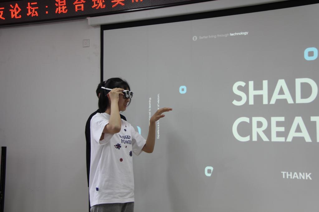 论坛结束后,胡金鑫校友与师生进行了技术交流与探讨,对大家提出的问题进行了具体而贴切的解答,并让学生们现场体验自己公司的VR眼镜。这次论坛深刻的引发了大家对虚拟现实技术和智能化产品的深度思考,扩大了视野,学院师生获益良多。
