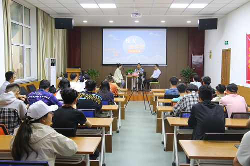 访谈活动中,校友们回顾了自己在校期间的学习和生活情况,畅谈大学的心路历程,表达了对见到昔日老友及师长的喜悦之情和对学校发展的深情祝福,同时也与在座的同学们分享了毕业后的成长经历和成功经验。互动环节,两位校友围绕学生们关注的考研、就业及学习生活等问题,答疑解惑,并鼓励学生要勇于尝试,不断前行,努力成就更好的自己。