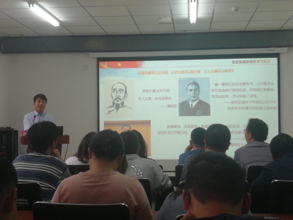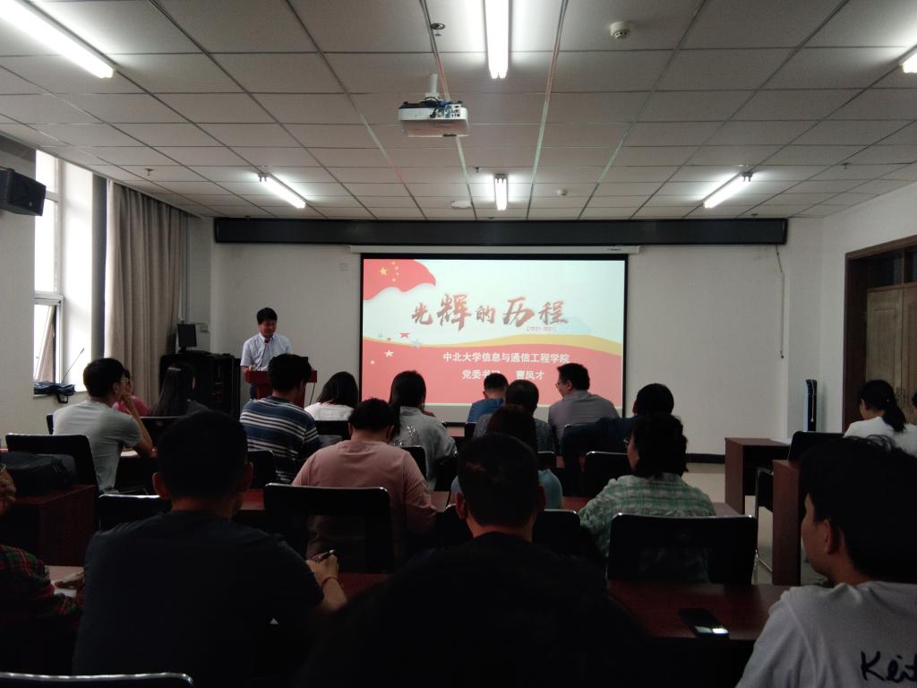 2021年5月25日下午,在科学楼B座715报告厅,校党史学习教育宣讲团成员、学院党委书记曹凤才为全院师生党员上了一堂生动的党史学习教育专题党课--党的百年光辉历程。全体党支部书记和师生党员代表参加了学习。