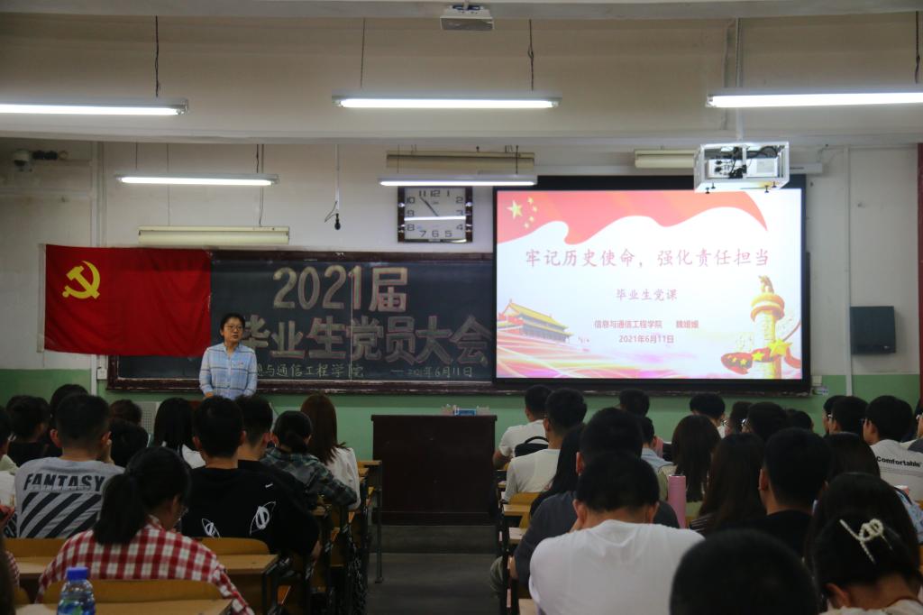 党委副书记魏媛媛为毕业生党员上了一堂生动的专题党课——“牢记历史使命,强化责任担当”,全体毕业生党员参加了此次学习。