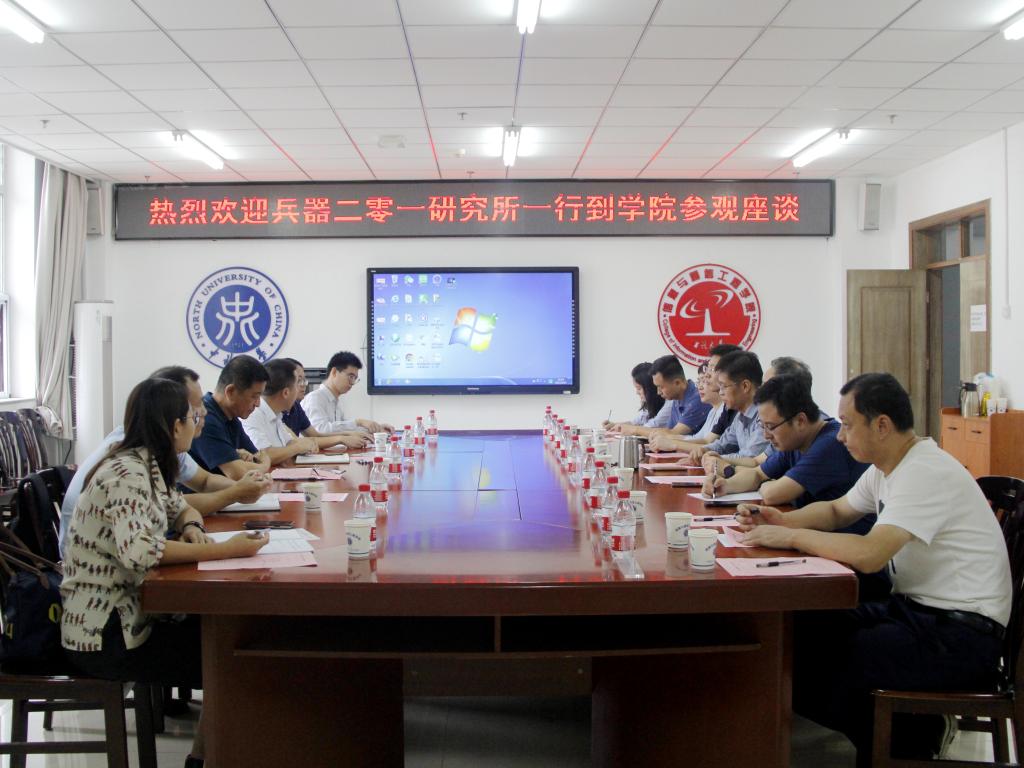 9月17日下午,兵器集团科技带头人田兴科带领二零一研究所成员一行6人到学院进行参观座谈。院长杨风暴及学院教师代表带领参观并出席了交流座谈会。