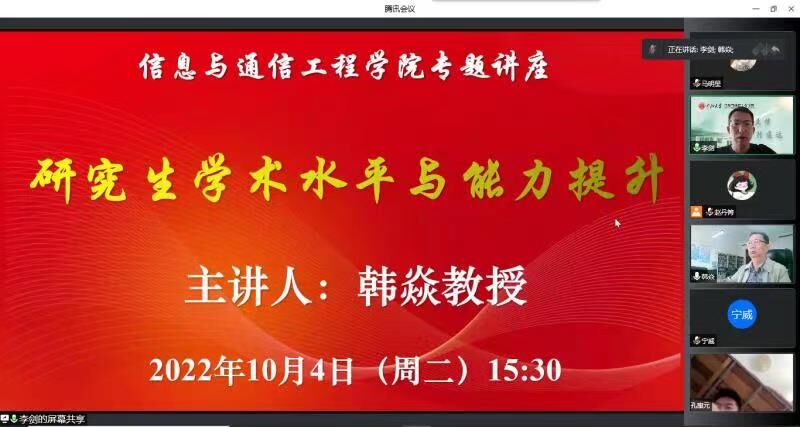 首席学科带头人韩焱教授,杨风暴院长、赵冬娥副院长等多位硕博士研究生导师,分别围绕科学研究、学术论文写作、研究生学术水平与能力提升、研究生科学思维和创新能力的培养以及学术性PPT制作方法探索等几个主题开展,内容丰富,为很多同学的科研工作提供帮助。