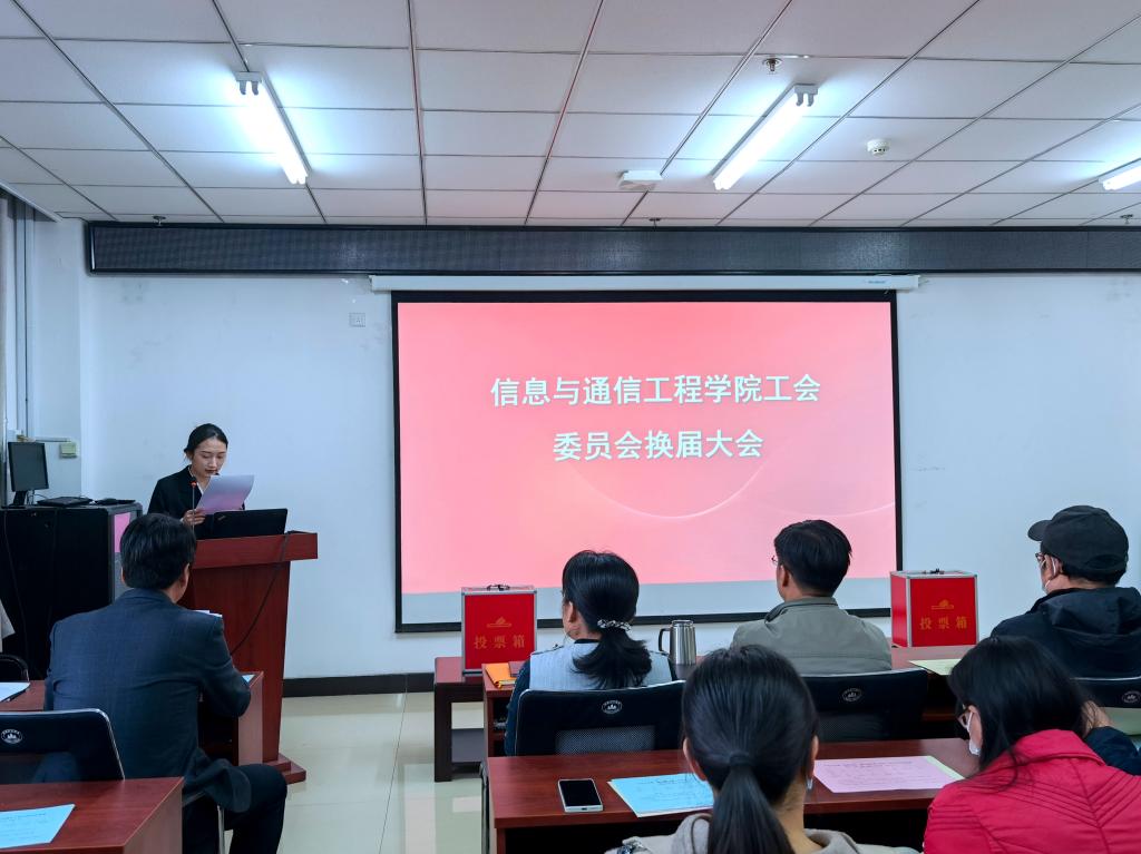 2022年10月18日下午4时,学院在科学楼B座715学术报告厅召开工会委员会换届大会、中北大学第三届“双代会”代表选举大会、中北大学第一届妇女代表大会代表选举大会,学院全体教职工到场参会并进行投票,大会由院党委书记曹凤才主持。