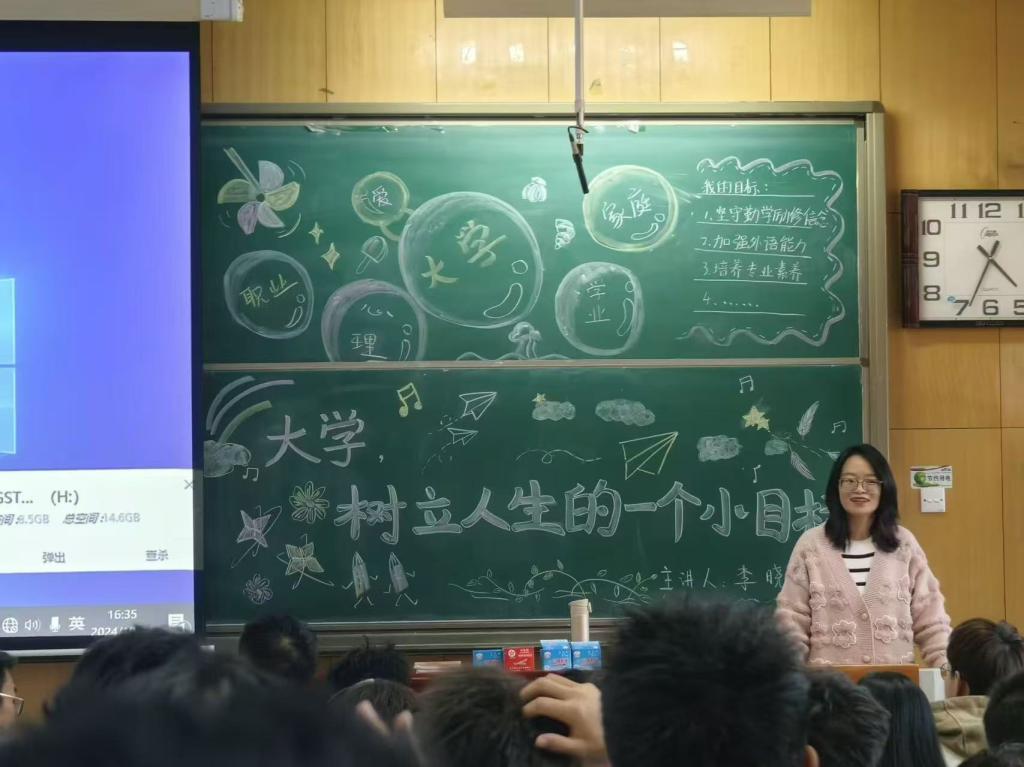 在互动环节中,参与的新生踊跃提问,分享自己的困惑与期待。李老师耐心地回答了每一个问题,并给予了中肯的建议,帮助学生们更清晰地认识自我和未来的方向。同时,李老师鼓励新生们要珍惜大学时光,勇敢追求自己的梦想,不断设定并实现人生小目标。