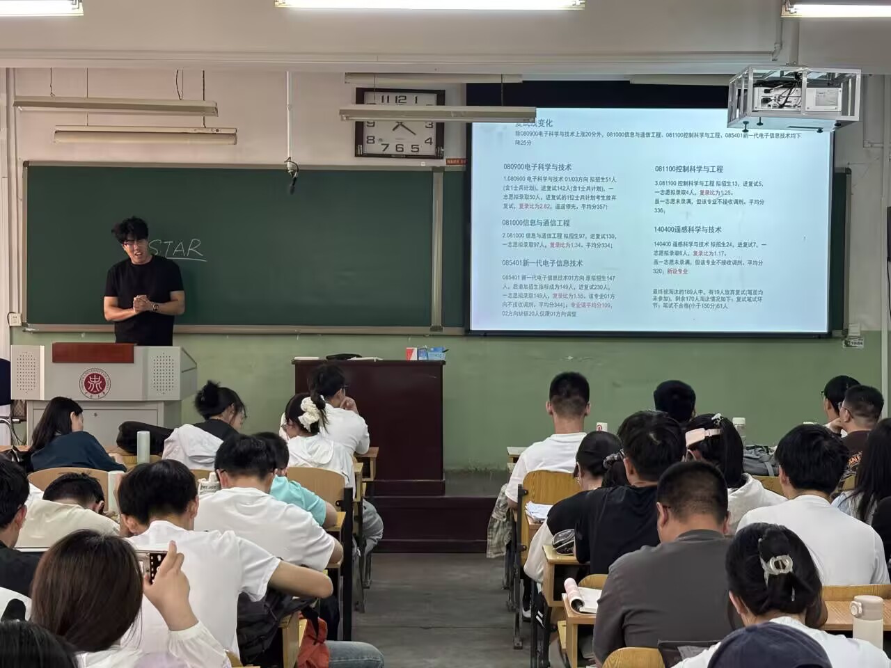 5 月 12 日,“‘研’途有你,点亮逐梦灯塔” 考研经验分享会在 01202H 教室热烈举行。考入北京邮电大学的郭惠知以自身经历为切入点,深入分享实用择校策略,着重强调 “选择大于努力”,引导同学们在考研之路上科学规划、精准定位。考入西安电子科技大学的王宇光则运用详实数据,深入剖析各学院录取方案,以 “高分非‘保险箱’” 的提醒,敲响备考警钟。他还从备考计划制定、心态调节、时间合理分配等多维度倾囊相授,为在场考研学子驱散迷雾,指明前行方向。