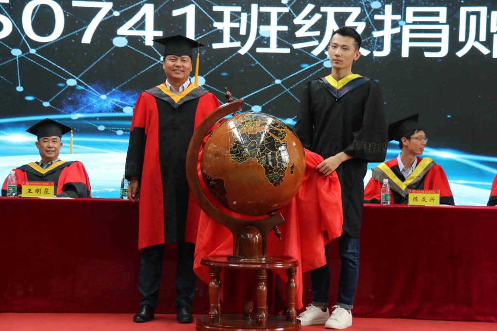 2018届全体班主任上台对毕业生寄语,向同学们传达了依依不舍和殷切期望。毕业生代表向班主任献花,表达对培养和教育他们四年班主任的感谢之情。全体毕业生和14050741班分别向学院捐赠纪念品,表达对学院的感谢!