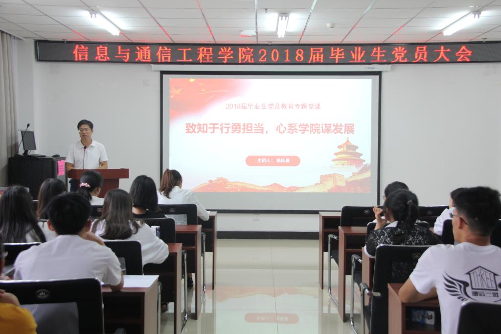 学院2018届毕业生党员大会在院楼715会议室顺利召开,本次毕业生党员大会以系列微党课的形式举行。院党委书记曹凤才、院长杨风暴、院党委副书记兼副院长魏媛媛、各学生党支部书记、全体2018届毕业生党员参加了本次大会,会议由院学生科科长任雁主持。