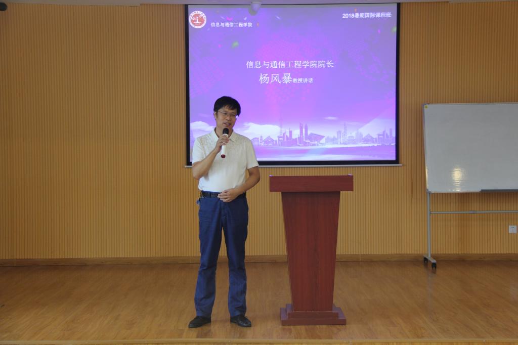 杨风暴院长发表重要讲话,他首先祝贺52名同学顺利结业,收获了与众不同的学习体验;其次,他感谢所有为本次培训顺利举办而辛苦付出的校院领导、相关处室负责人、老师和同学们;最后,杨院长希望同学们能将本次培训学到的知识运用到今后的学习中,并将国际化理念传播和扩散到更多的同学中去,真正提升学院国际化办学水平。
