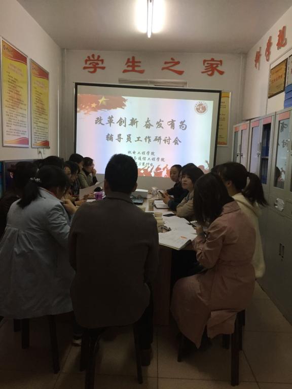 进行工作交流研讨。学院党委副书记魏媛媛及全体辅导员参加了本次会议,会议由学生科科长任雁主持。