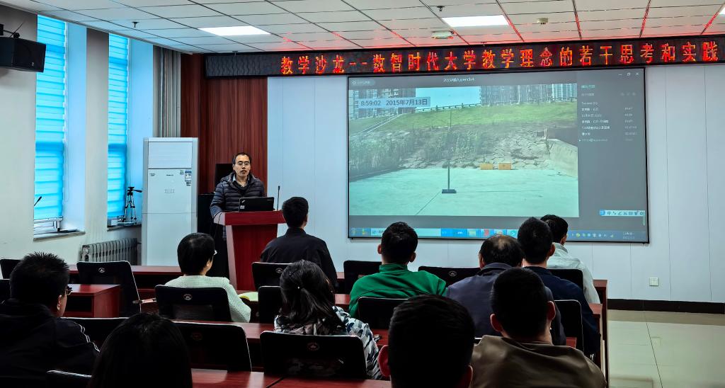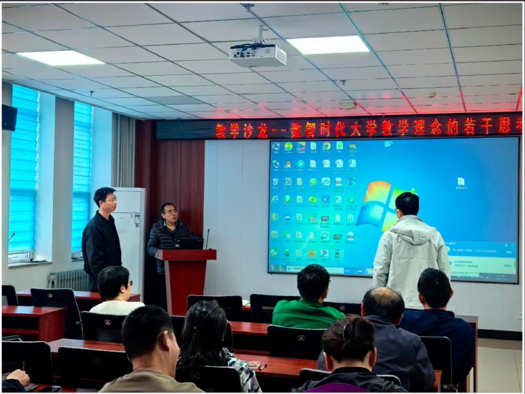 教学沙龙---数智时代大学教学理念的若干思考和实践在学院科学楼B座715会议室举行。会议邀请中北大学数学学院数学系主任李有文教授为学院专业负责人和骨干教师做了相关教学理念的讲座,会议由学院副院长陈友兴主持。