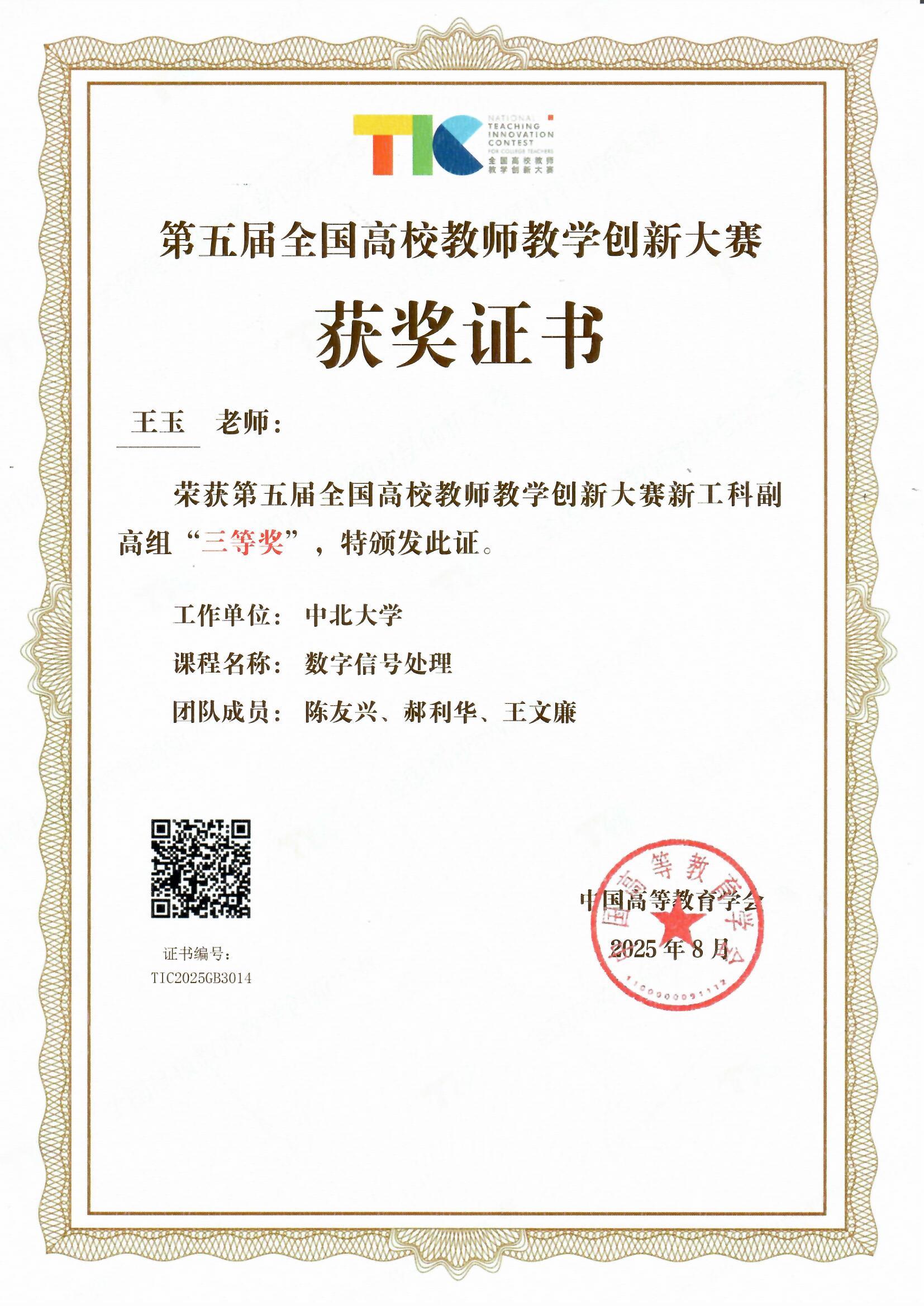 王玉老师团队携《数字信号处理》课程从众多优秀选手中脱颖而出荣获新工科副高组三等奖,充分体现了8X8X