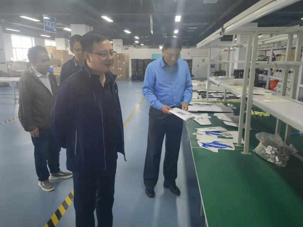 一行的到来表示欢迎,并介绍了公司主要业务和目前发展情况。公司致力于提供空间信息数据采集、处理和应用全流程解决方案,包括航空摄影及数据处理、遥感数据处理及应用、软件研发及行业信息化建设、无人机研发及销售、北斗导航定位服务等空间信息综合服务。双方在研究领域具有很高的契合度,有着深入合作的广阔空间。此外,学院一行在蒋海滨副总经理带领下参观了服务项目和产品中心,强调以“发展、开放、专业”的经营理念,打造空间信息产业品牌。