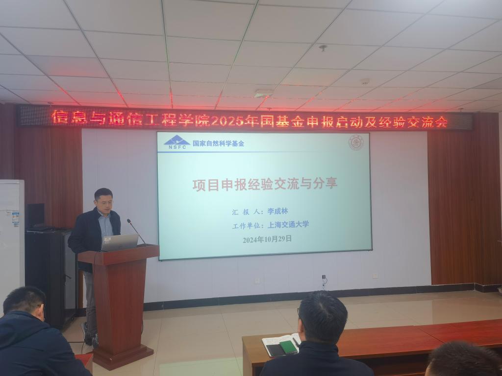 在科学楼B座715学术报告厅召开了2025年国家自然科学基金申报启动及经验交流会,学院邀请了上海交通大学李成林教授作题为《国家自然科学基金项目申报经验交流与分享》的专题报告,院长陈平出席并作申报动员,会议由科研副院长刘吉主持,学院全体拟申报教师参会。