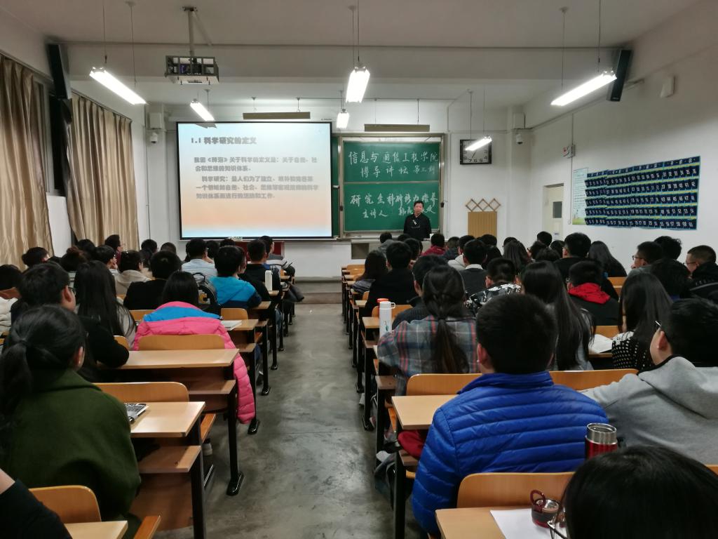 2018年10月25日晚7点,8X8X 在13301教室成功举办了8X8X 第三期博导讲坛。本次博导讲坛邀请到8X8X 博士生导师韩焱教授,做了题为“研究生科研创新能力培养”的博导讲坛,8X8X 全体2018级硕士研究生积极踊跃的参加了此次活动。