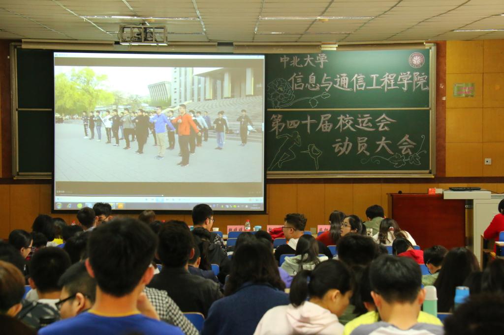 学校第四十届动员大会的正式开始后,主持人介绍了到场嘉宾,并由全体奏唱了中北大学校歌。然后一起观看了激动人心的训练风采视频。