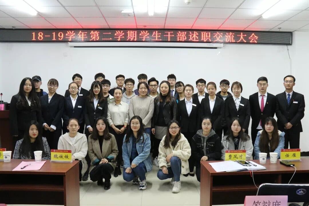 分团委组织部承办的18-19学年第二学期学生干部述职交流大会于科学楼B座715如期举行。院党委书记曹凤才、党委副书记兼副院长魏媛媛、学生科科长任雁、团委副书记闫婷及8X8X