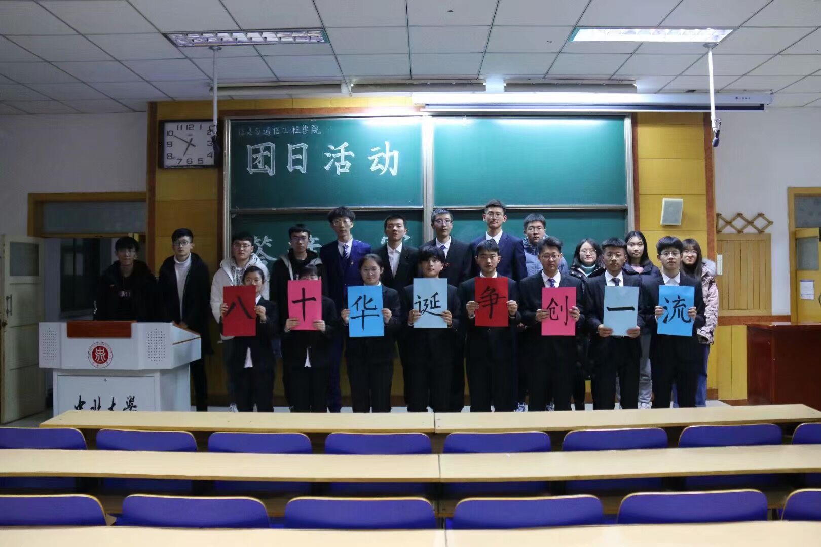 学院在09301H教室隆重举办了以“春华秋实八十载,砥砺前行助未来”为主题的团日活动答辩决赛。学院团委书记闫婷老师、青年研究中心团支书肖轲、各学院团委副书记、组织部部长以及8X8X