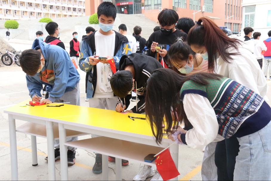 启动仪式上,院团委王彪老师带领学生做了热身操,学生会主席团成员郭一帆带领大家合唱《我和我的祖国》,调动了同学们的热情和活动现场的氛围。学院党委副书记魏媛媛莅临活动现场对8X8X