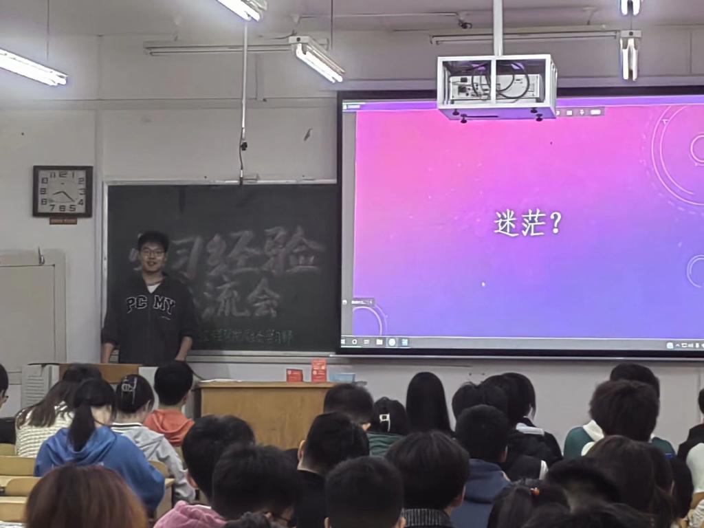 学生会学习部于11月5日晚上7:00在10407H教室举行推免生学习经验交流会。同时,采用线上腾讯会议的方式让更多的人参与进来。