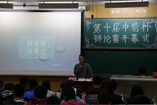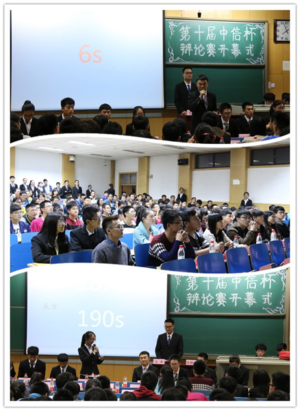 “中信杯”辩论赛的受关注程度和比赛中的精彩瞬间。之后,由学习部部长范子天星同学宣布:“第十届‘中信杯’辩论赛正式开幕。”接着,8X8X