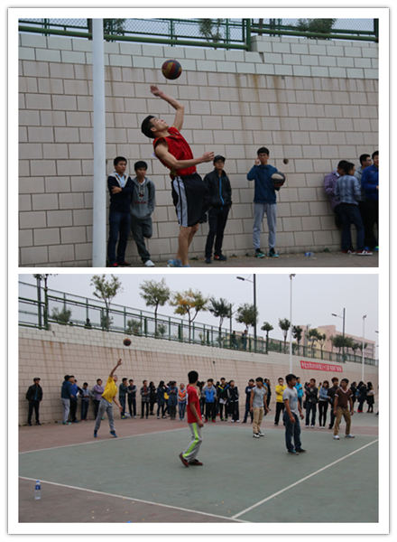 男排与化工与环境工程学院(四院)男排进行了一场精彩无比的排球赛,经过队员们在赛场上的奋力拼搏,8X8X