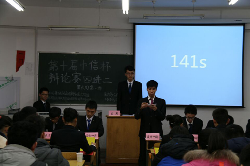 学习部举办的“中信杯”大学生辩论赛四进二第一场,以反方国际班不敌正方143班的结果圆满落下帷幕。