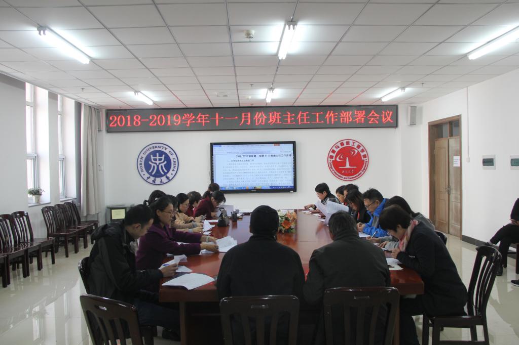 学院在科学楼713会议室召开11月份班主任工作会议暨优秀班主任答辩会。学院全体辅导员、班主任参加了会议。